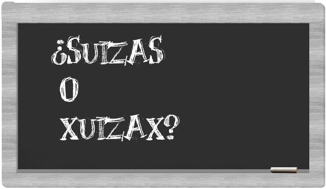 Cuando se trata de la distinción entre suizas y xuizax, no deberías titubear ni un instante, puesto que únicamente suizas figura correctamente en los registros de la lengua oficial, mientras que xuizax no se halla en el prestigioso Diccionario de la Real Academia Española.