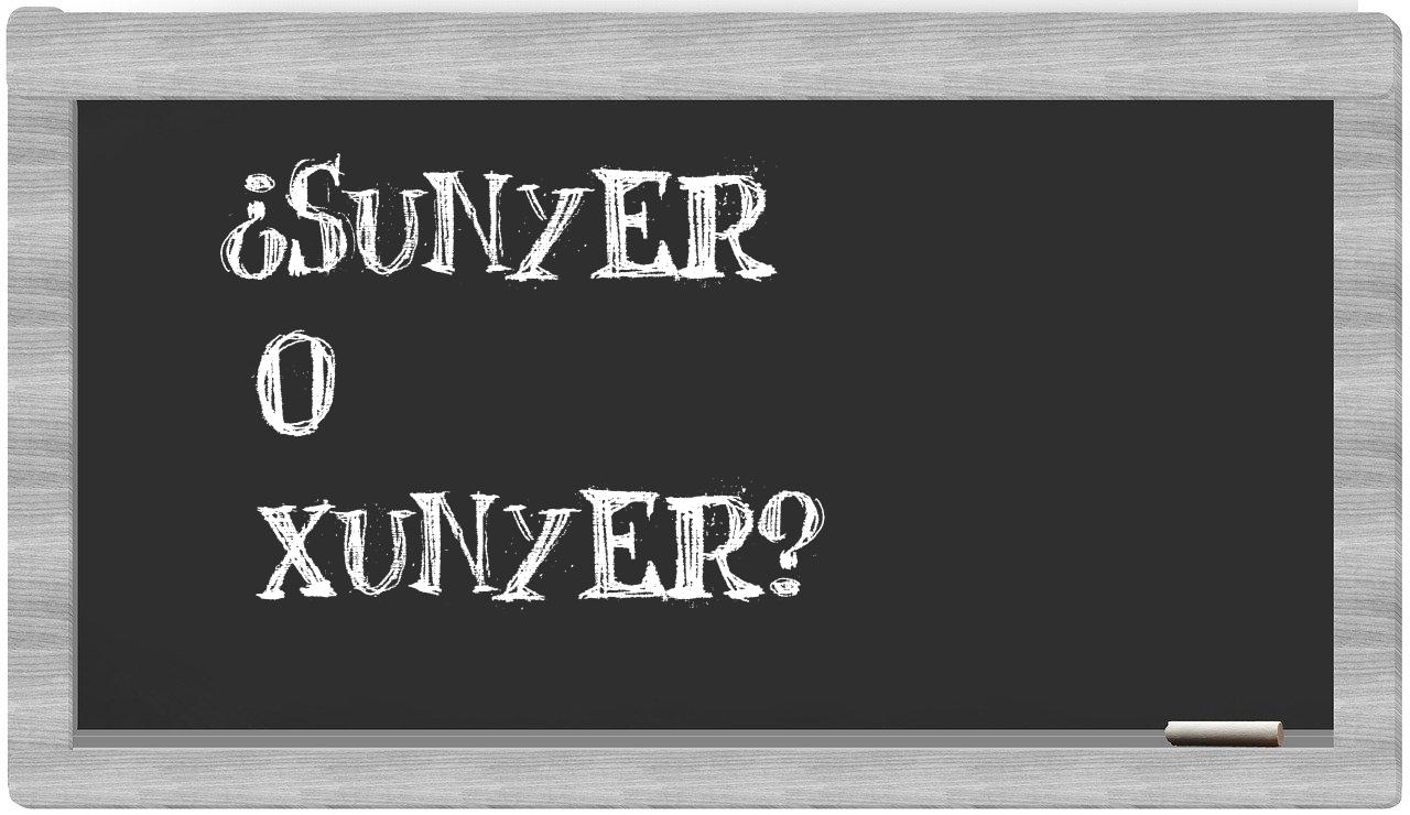 Cuando se trate de la elección entre sunyer y xunyer, no deberías titubear, pues únicamente sunyer se presenta con la ortografía adecuada. Por otro lado, xunyer no figura en el Diccionario de la Real Academia Española.