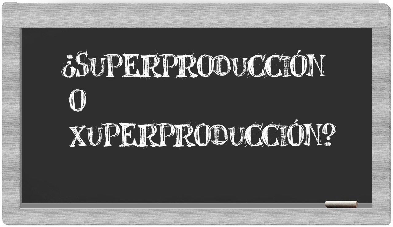 Cuando se trata de las voces superproducción y xuperproducción, no hay lugar para la indecisión, puesto que únicamente superproducción se encuentra debidamente registrada y aceptada, mientras que xuperproducción carece de reconocimiento en el Diccionario de la Real Academia Española.