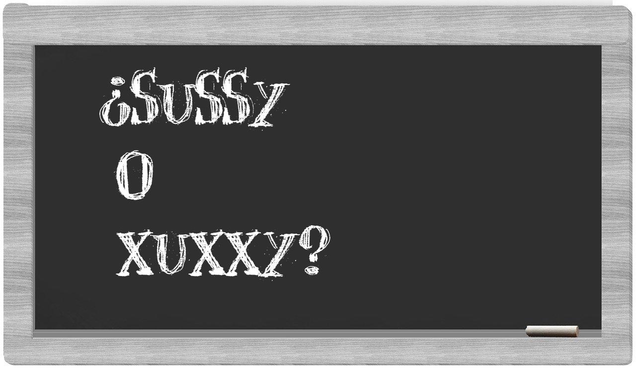 En la particular situación que existe entre los términos sussy y xuxxy, nunca debería haber incertidumbre, puesto que únicamente sussy se encuentra correctamente formulada. La palabra xuxxy no figura en el Diccionario de la Real Academia Española.