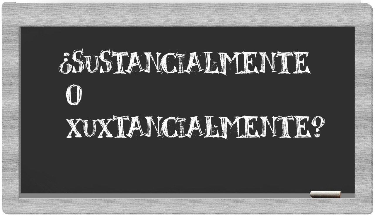 En la situación específica que involucra las palabras sustancialmente y xuxtancialmente, no deberías tener ninguna incertidumbre, ya que únicamente sustancialmente es la forma que se encuentra correctamente redactada. En cambio, xuxtancialmente no se halla en el Diccionario de la Real Academia Española.