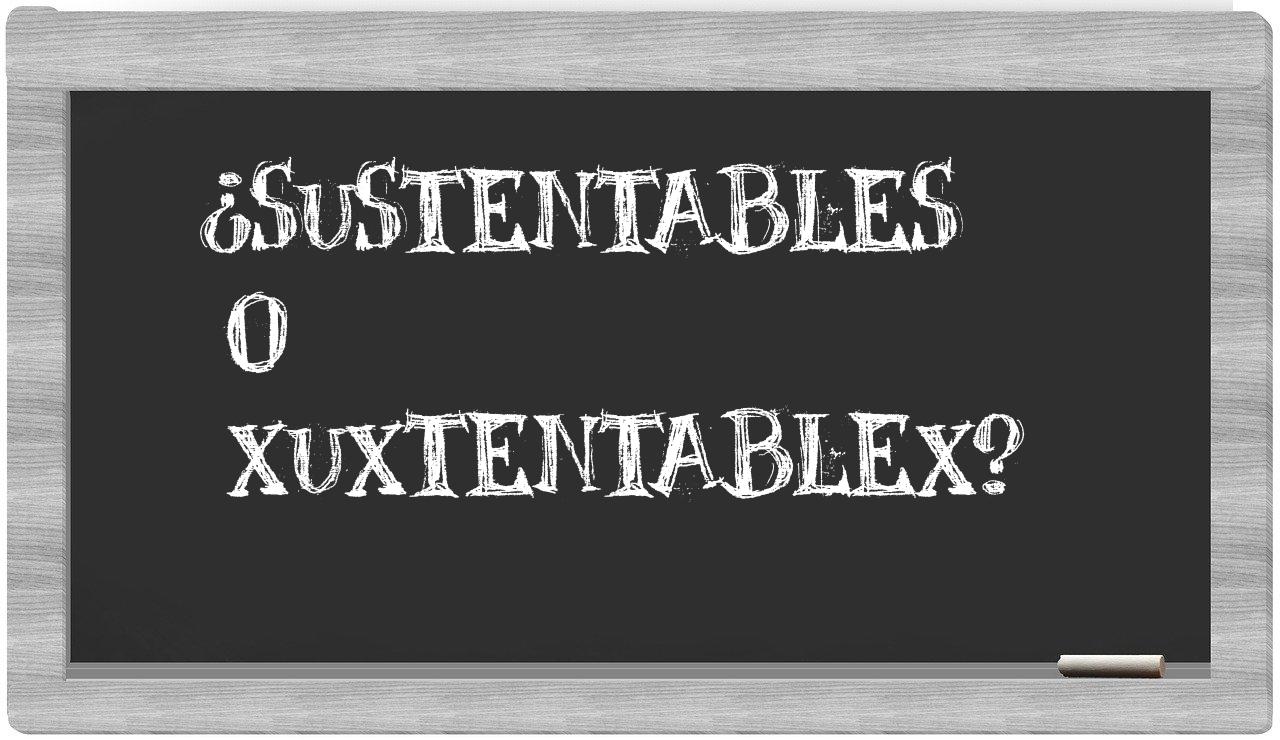 Cuando se presente la elección entre sustentables y xuxtentablex, no vaciles ni un instante, porque únicamente sustentables es la opción que se encuentra debidamente registrada en el Diccionario de la Real Academia Española, mientras que xuxtentablex carece de tal reconocimiento.
