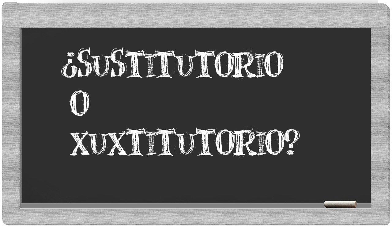 En la particular situación que existe entre los términos sustitutorio y xuxtitutorio, nunca debería haber incertidumbre, puesto que únicamente sustitutorio se encuentra correctamente formulada. La palabra xuxtitutorio no figura en el Diccionario de la Real Academia Española.