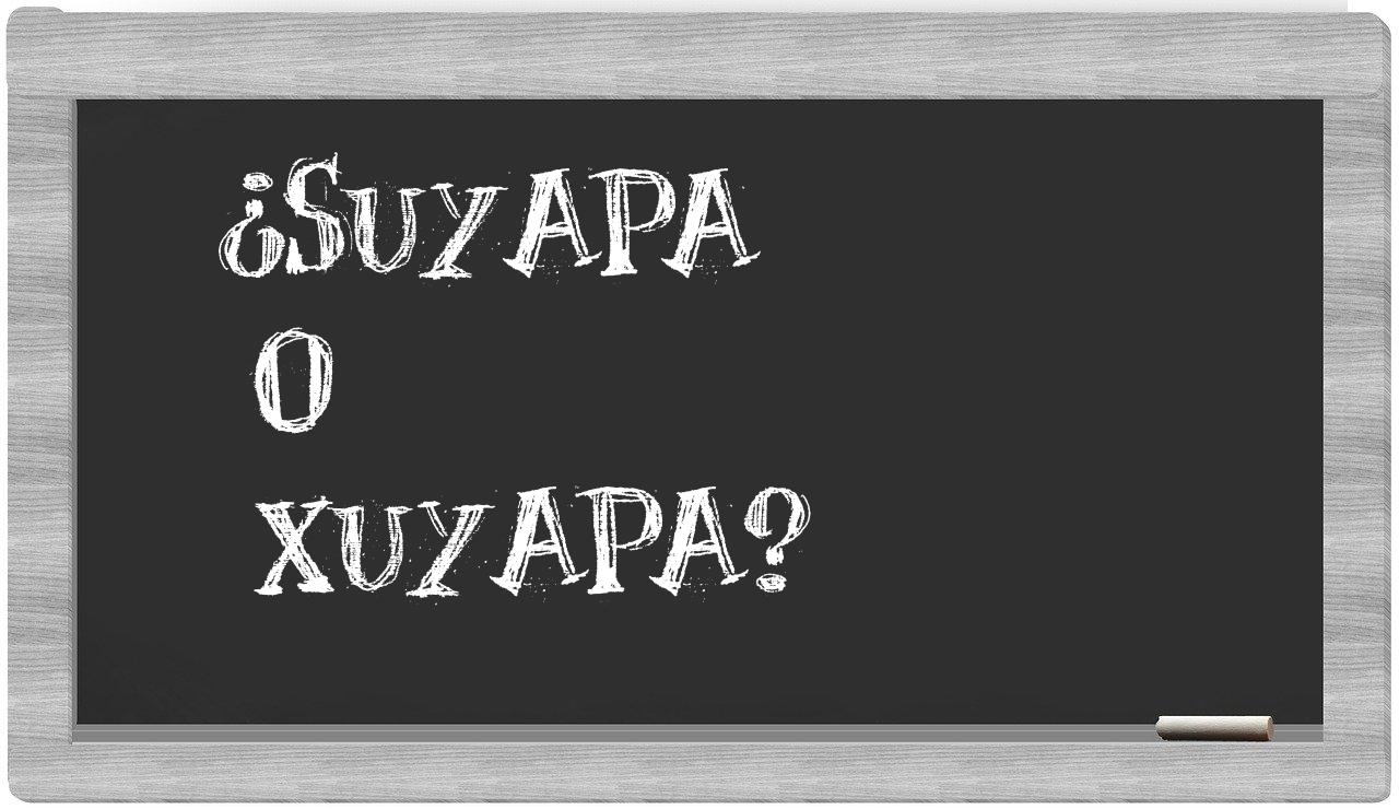 Cuando se presenta la disyuntiva entre suyapa y xuyapa, es fundamental que no haya incertidumbre, puesto que únicamente suyapa es la forma adecuada. Por otro lado, xuyapa no se encuentra registrada en el Diccionario de la Real Academia Española.