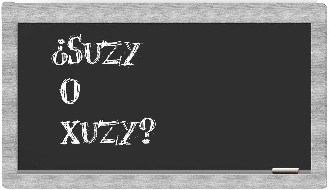 En la situación particular en la que se encuentran los términos suzy y xuzy, no debes titubear, dado que únicamente suzy se encuentra correctamente redactada; xuzy, por el contrario, no figura en el Diccionario de la Real Academia Española.