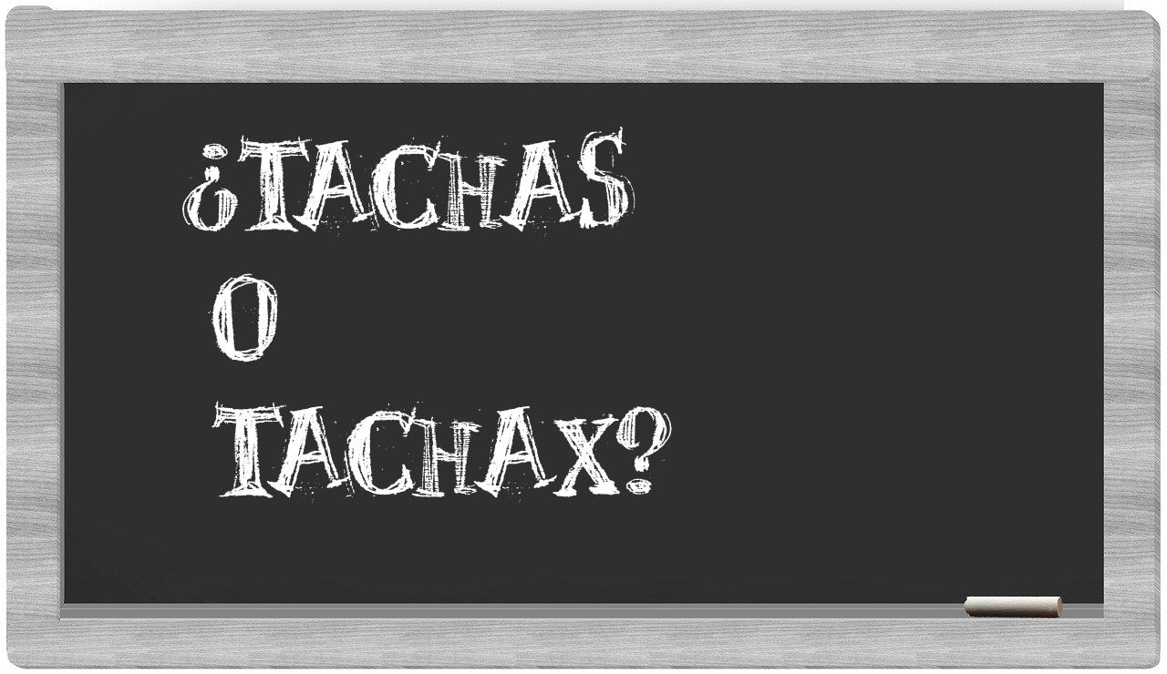 Cuando se trata de la distinción entre tachas y tachax, la elección es evidente, puesto que únicamente tachas se encuentra correctamente formulada. Cabe mencionar que tachax no figura en el prestigioso Diccionario de la Real Academia Española.
