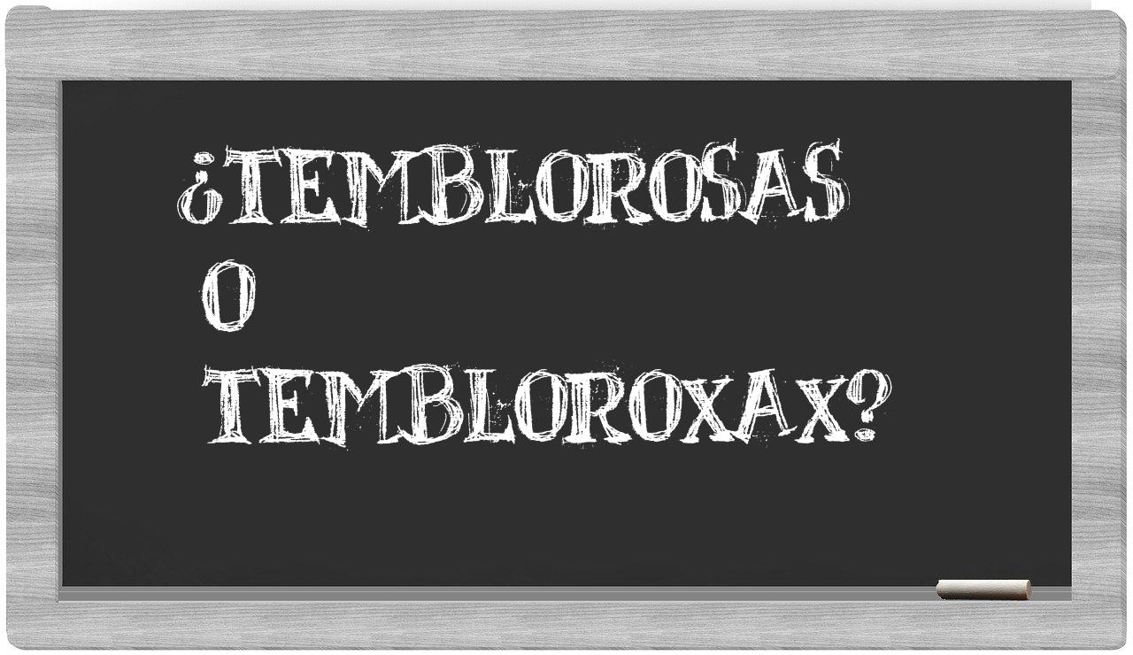 Cuando se trata de decidir entre los términos temblorosas y tembloroxax, la elección debe ser clara y sin titubeos, ya que únicamente temblorosas es la forma adecuada y aceptada; por otro lado, tembloroxax no se encuentra registrado en el Diccionario de la Real Academia Española.