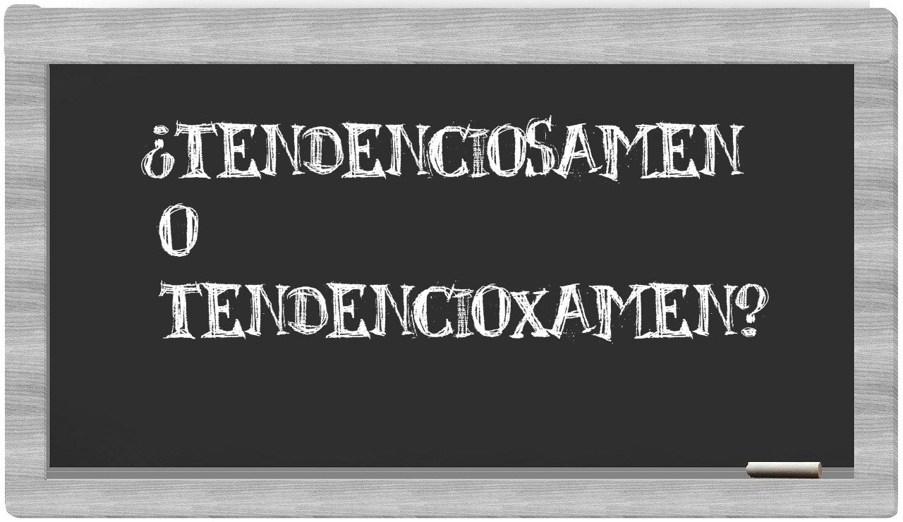 Cuando se presenta la comparación entre tendenciosamen y tendencioxamen, no debería haber lugar a la incertidumbre, puesto que únicamente tendenciosamen se encuentra validada como una forma correcta. Por otro lado, tendencioxamen no figura en el Diccionario de la Real Academia Española.