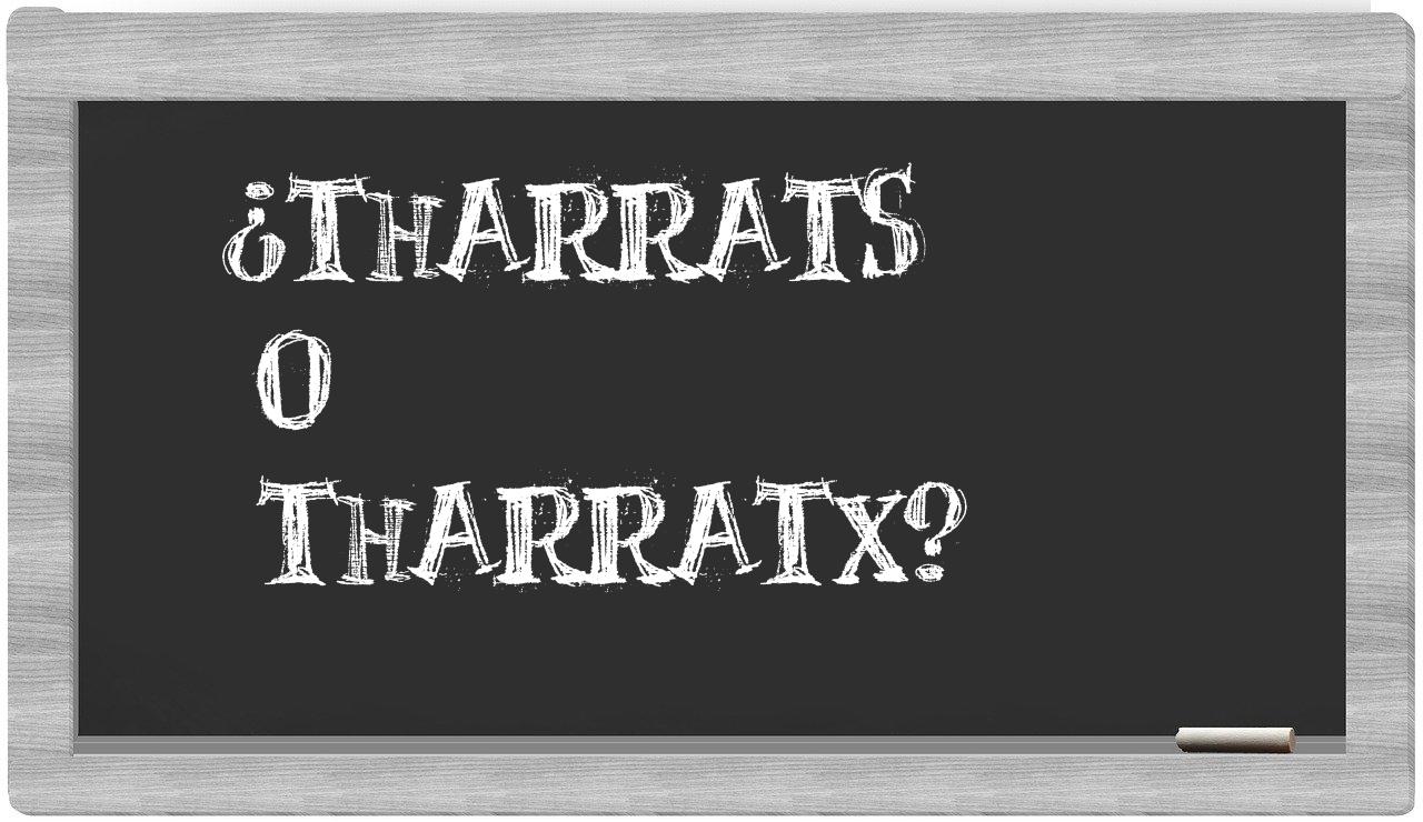 En la particular situación que existe entre los términos tharrats y tharratx, nunca debería haber incertidumbre, puesto que únicamente tharrats se encuentra correctamente formulada. La palabra tharratx no figura en el Diccionario de la Real Academia Española.