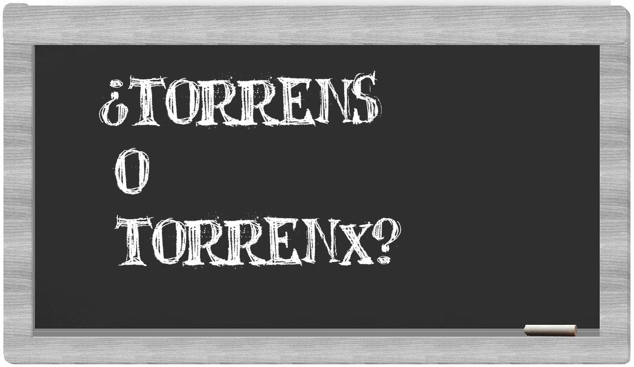 Cuando se presenta la comparación entre torrens y torrenx, no debería haber lugar a la incertidumbre, puesto que únicamente torrens se encuentra validada como una forma correcta. Por otro lado, torrenx no figura en el Diccionario de la Real Academia Española.
