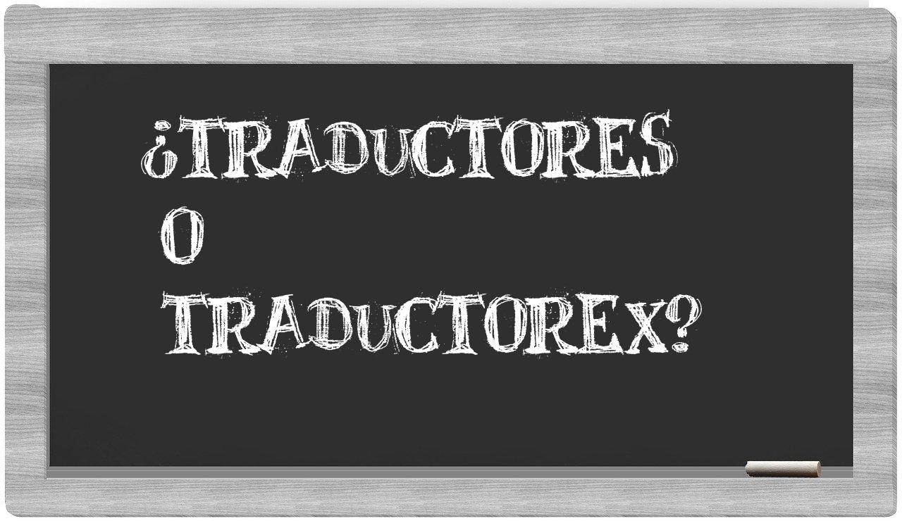 Cuando se trata de las voces traductores y traductorex, no hay lugar para la indecisión, puesto que únicamente traductores se encuentra debidamente registrada y aceptada, mientras que traductorex carece de reconocimiento en el Diccionario de la Real Academia Española.