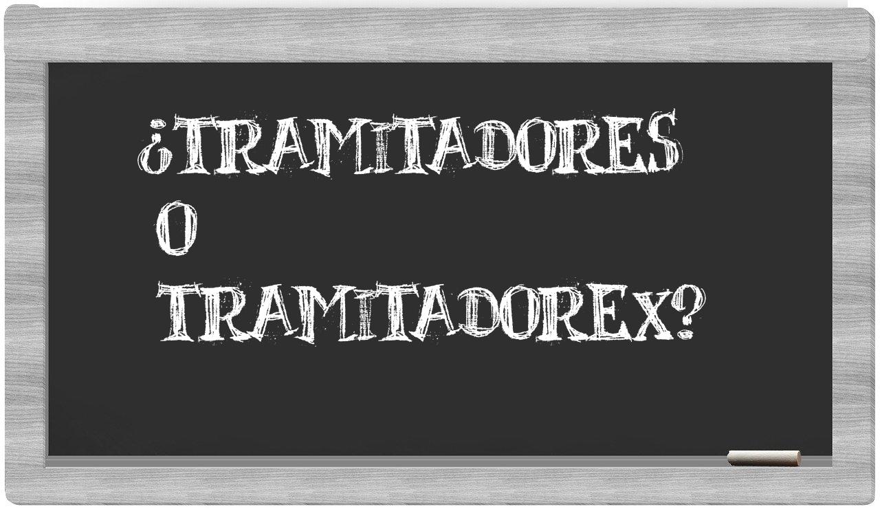 En la situación particular donde se confrontan los términos tramitadores y tramitadorex, es fundamental que no vaciles, pues únicamente tramitadores se encuentra correctamente redactada, mientras que tramitadorex no figura en el repertorio del Diccionario de la Real Academia Española.