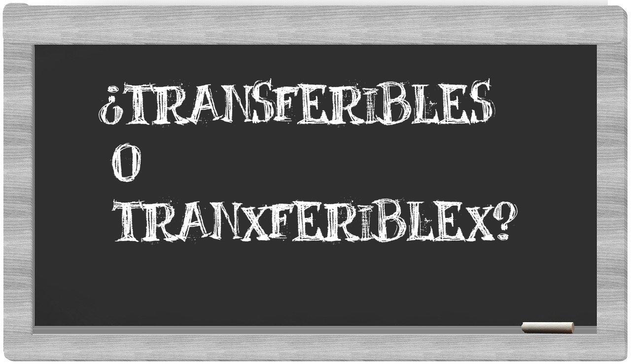 Cuando se presenta la elección entre las expresiones transferibles y tranxferiblex, es fundamental que no titubees, puesto que únicamente transferibles se registra de manera adecuada. Por otro lado, tranxferiblex carece de reconocimiento en el Diccionario de la Real Academia de la Lengua.