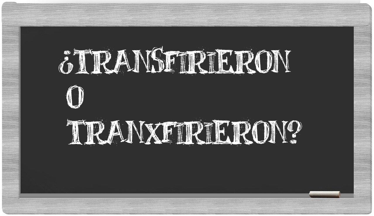 En la situación específica que involucra los términos transfirieron y tranxfirieron, no deberías titubear en tu elección, puesto que únicamente transfirieron se encuentra correctamente redactado; de hecho, tranxfirieron no forma parte del léxico reconocido por la Real Academia Española.