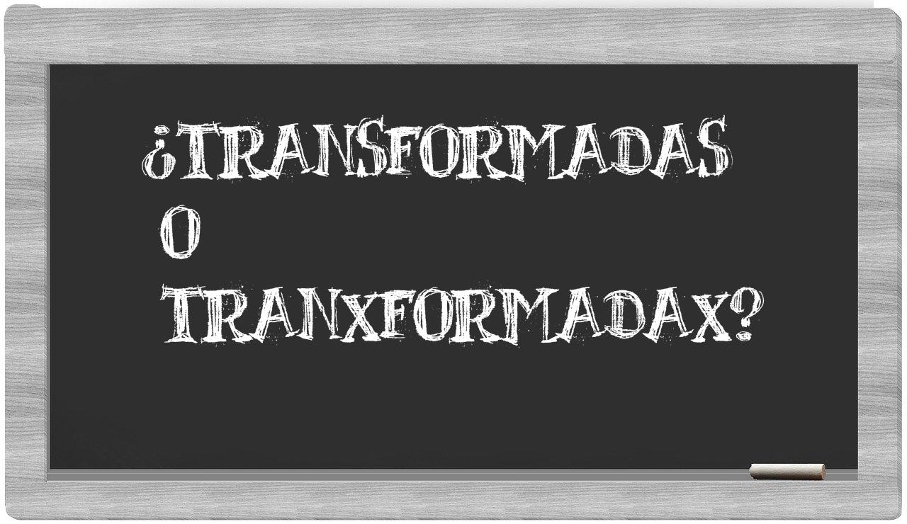 Cuando se trata de elegir entre transformadas y tranxformadax, la decisión es evidente, puesto que solo transformadas refleja la forma adecuadamente registrada, mientras que tranxformadax no se encuentra en el repertorio del Diccionario de la Real Academia Española.