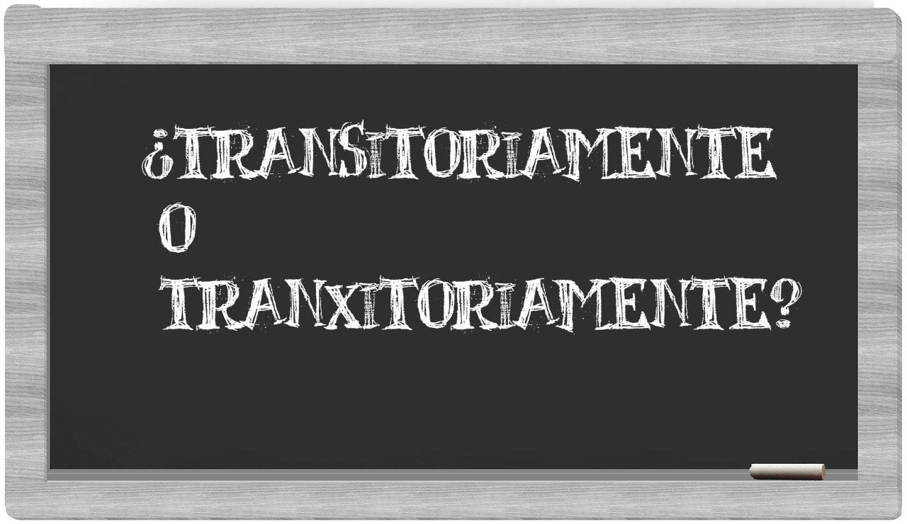 Cuando se trata de la distinción entre transitoriamente y tranxitoriamente, es fundamental que no vaciles, puesto que solo transitoriamente es la opción que se encuentra adecuadamente formulada. En cambio, tranxitoriamente carece de presencia en el Diccionario de la Real Academia Española.