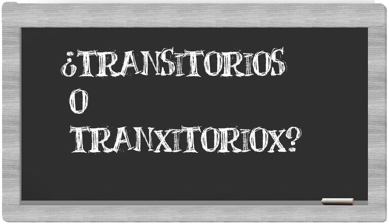 Cuando se trata de la distinción entre transitorios y tranxitoriox, no deberías titubear ni un instante, puesto que únicamente transitorios figura correctamente en los registros de la lengua oficial, mientras que tranxitoriox no se halla en el prestigioso Diccionario de la Real Academia Española.