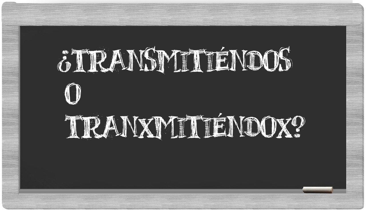 En la situación particular que involucra a transmitiéndos y tranxmitiéndox, no hay lugar para la vacilación, puesto que únicamente transmitiéndos se presenta con la ortografía apropiada, mientras que tranxmitiéndox es una forma que no se encuentra registrada en el Diccionario de la Real Academia Española.