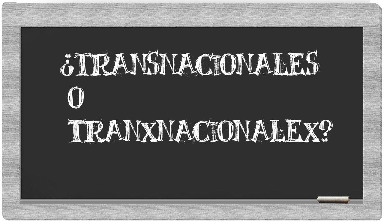 Cuando se trata de la distinción entre transnacionales y tranxnacionalex, no hay motivo para la incertidumbre, puesto que solo transnacionales es la opción correcta. Además, tranxnacionalex no se encuentra registrada en el Diccionario de la Real Academia Española.