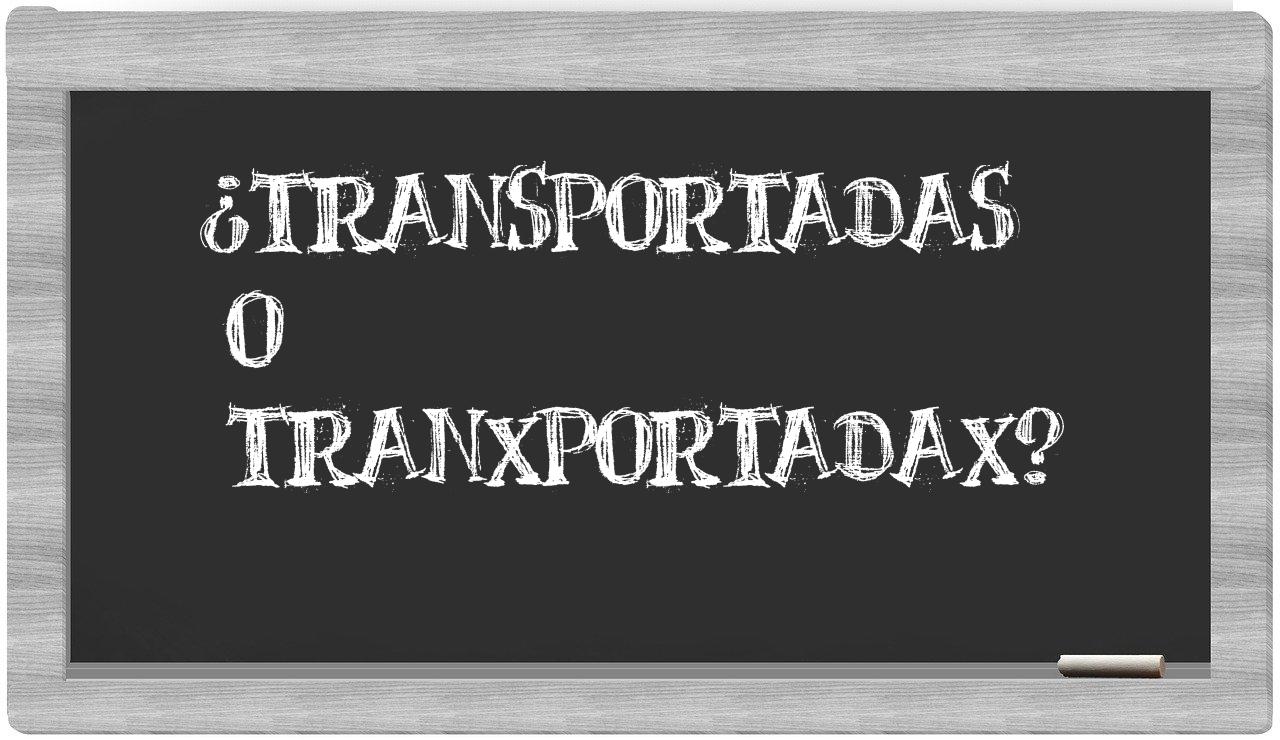 Cuando se trata de la relación entre transportadas y tranxportadax, no hay lugar para la incertidumbre, puesto que transportadas es la única que se encuentra registrada de manera adecuada, mientras que tranxportadax no forma parte del léxico del Diccionario de la Real Academia Española.