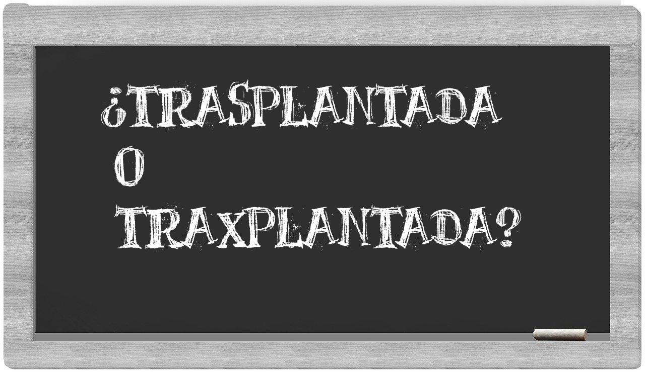 Cuando se trata de las expresiones trasplantada y traxplantada, la elección debe ser clara y firme, puesto que únicamente trasplantada se encuentra documentada de manera apropiada. Por otro lado, traxplantada no figura en el prestigioso Diccionario de la Real Academia Española, lo que reafirma la validez de tu elección por trasplantada.