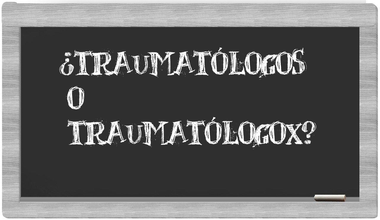 En lo que respecta específicamente a las expresiones traumatólogos y traumatólogox, no hay lugar para la incertidumbre, pues únicamente traumatólogos se encuentra correctamente redactada, mientras que traumatólogox no figura en el repertorio del Diccionario de la Real Academia de la Lengua.
