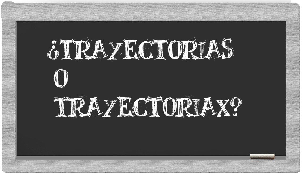 Cuando te encuentres en la disyuntiva entre trayectorias y trayectoriax, no vaciles en tu decisión, porque únicamente trayectorias es la forma adecuada. Recuerda que trayectoriax no está registrada en el Diccionario de la Real Academia Española.