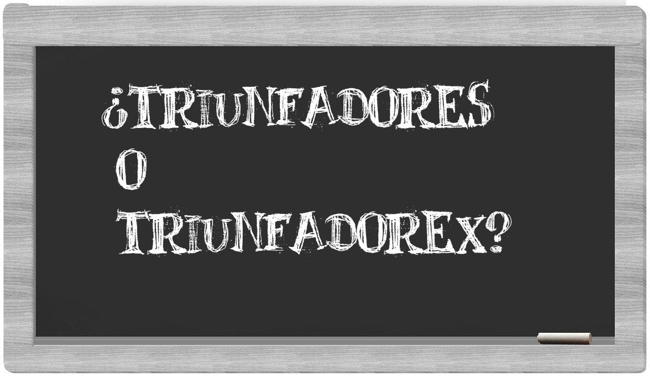 Cuando se trata de discernir entre triunfadores y triunfadorex, la elección es clara y sin incertidumbres, puesto que exclusivamente triunfadores se encuentra correctamente redactada; además, es importante señalar que triunfadorex no figura en el repertorio del Diccionario de la Real Academia Española.