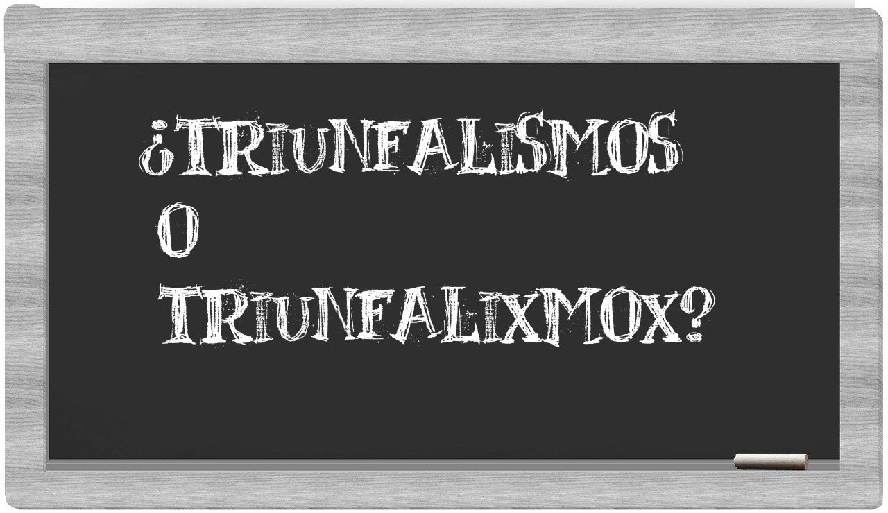 Cuando se presenta la disyuntiva entre triunfalismos y triunfalixmox, es fundamental que no haya incertidumbre, puesto que únicamente triunfalismos es la forma adecuada. Por otro lado, triunfalixmox no se encuentra registrada en el Diccionario de la Real Academia Española.