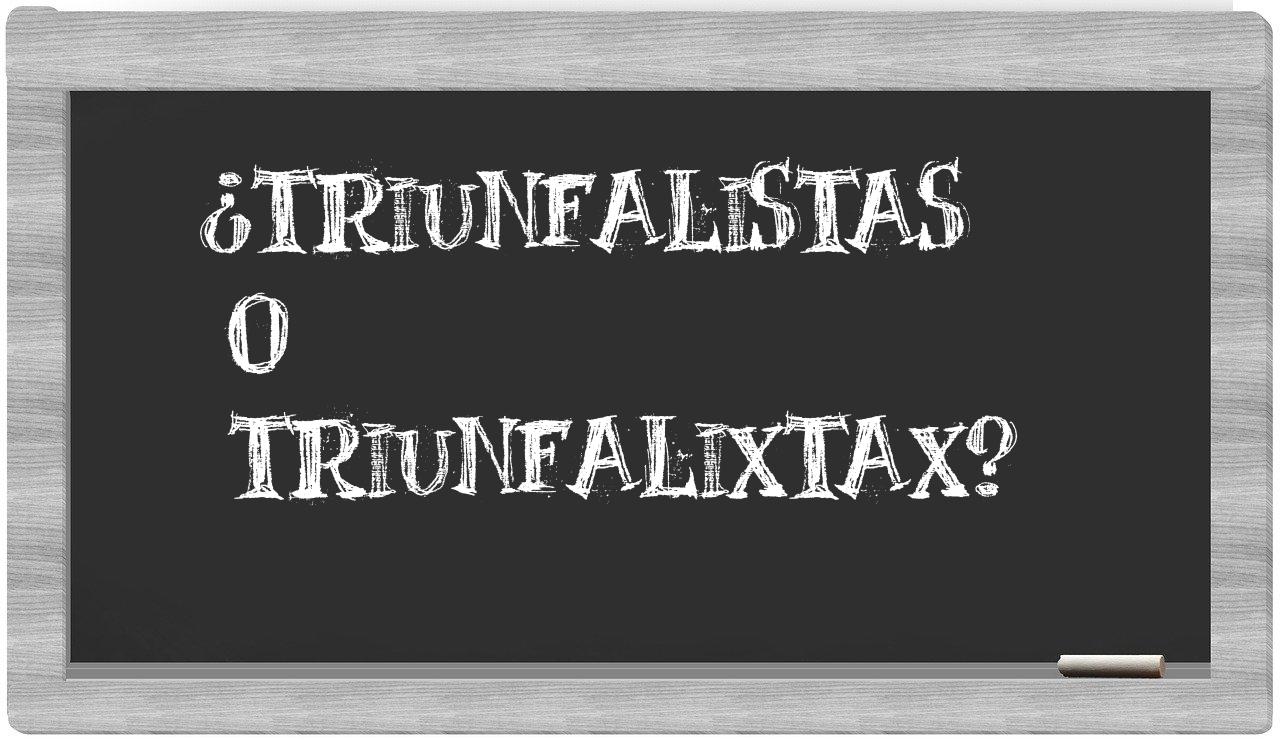 En la particular relación entre los términos triunfalistas y triunfalixtax, la elección debe ser evidente, porque únicamente triunfalistas se encuentra debidamente registrada en el léxico oficial. Por otro lado, triunfalixtax no forma parte del repertorio de la Real Academia de la Lengua.