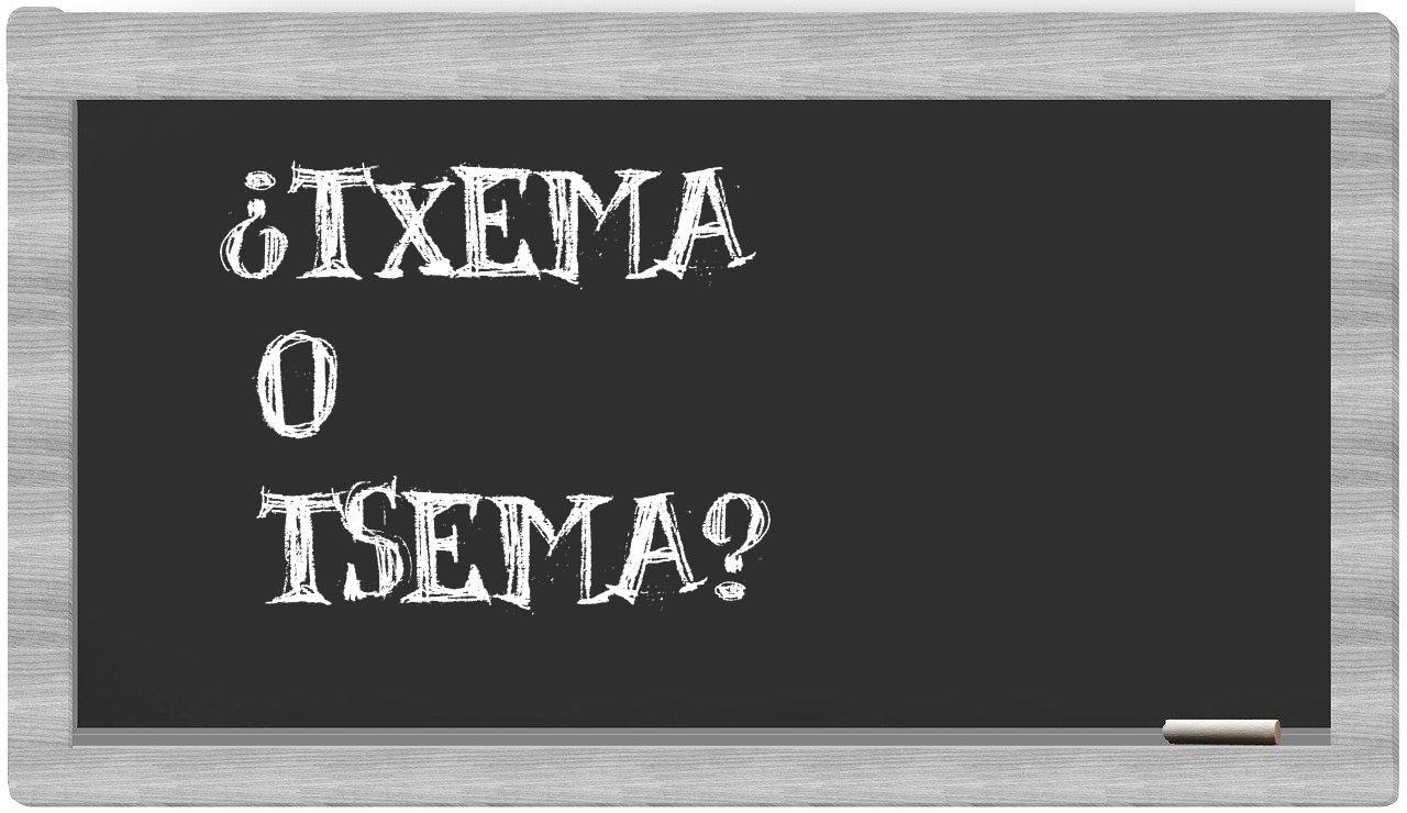 En la situación específica en la que se encuentren las voces txema y tsema, no deberías titubear, pues únicamente la forma txema es la que presenta una escritura adecuada. Por otro lado, tsema carece de presencia en el repertorio del Diccionario de la Real Academia Española.