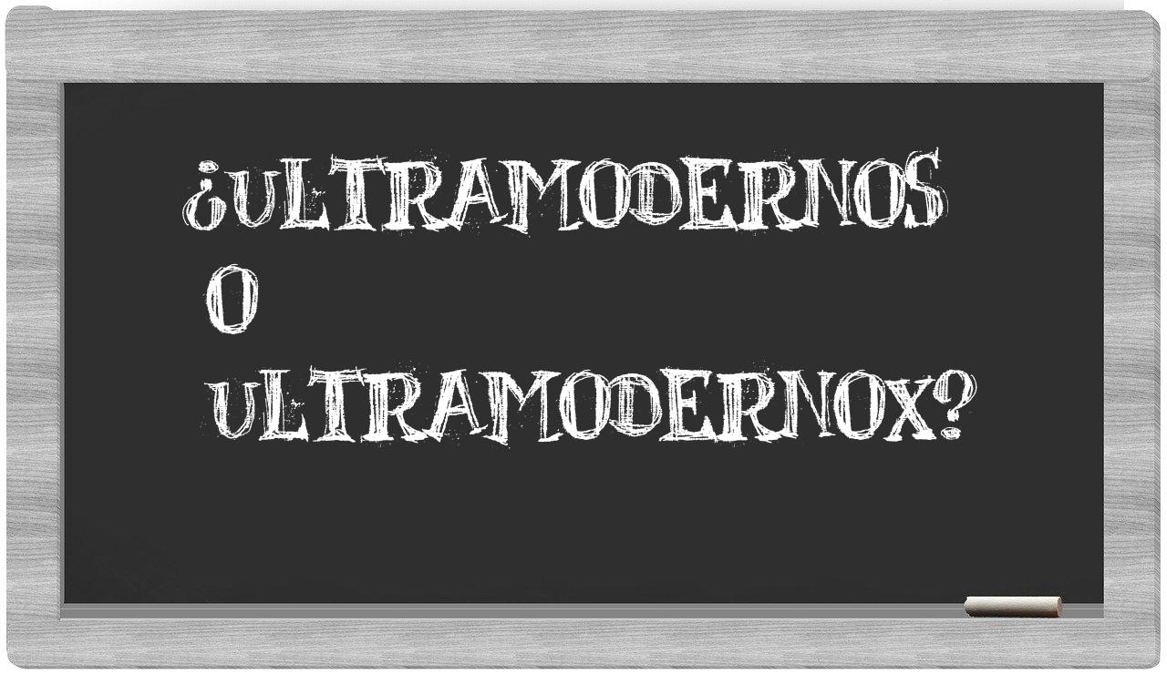 Cuando se trata de elegir entre ultramodernos y ultramodernox, no deberías titubear en absoluto, puesto que únicamente ultramodernos es la forma adecuada según las normas lingüísticas. Por su parte, ultramodernox no figura en el Diccionario de la Real Academia Española.