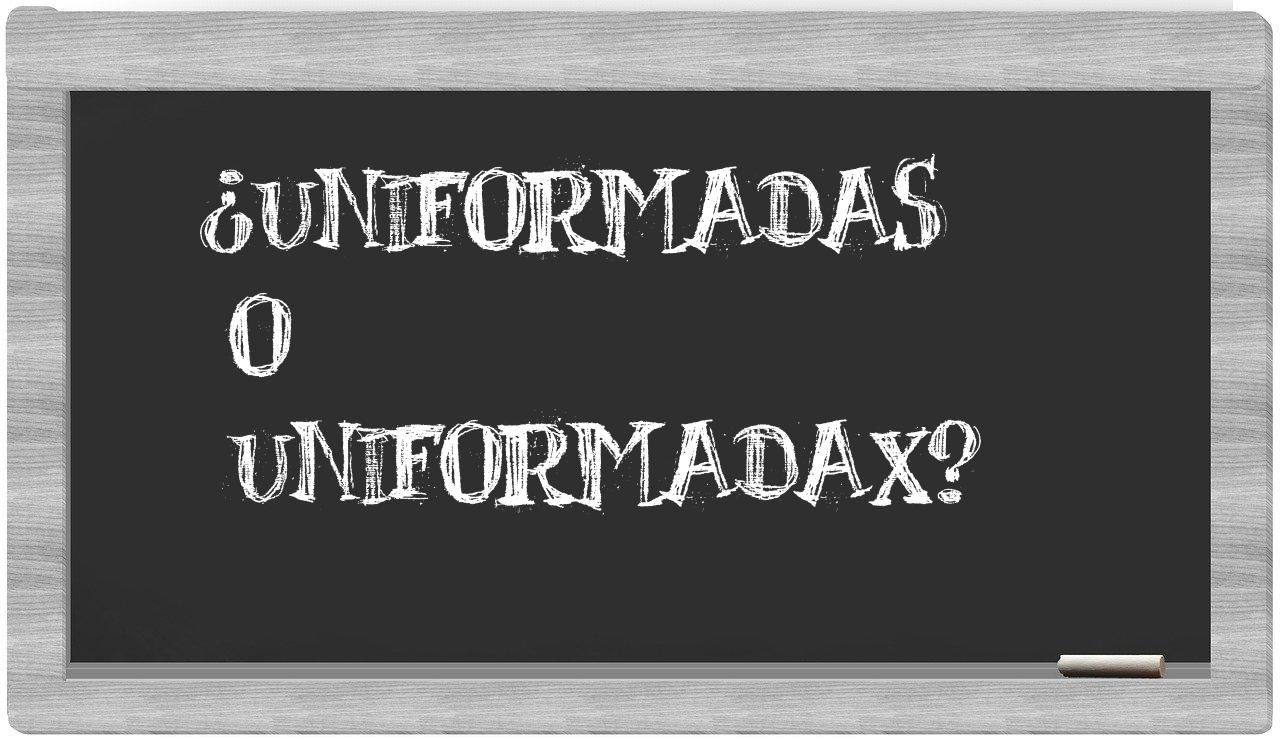 En la situación particular en la que se encuentran los términos uniformadas y uniformadax, no debes titubear, dado que únicamente uniformadas se encuentra correctamente redactada; uniformadax, por el contrario, no figura en el Diccionario de la Real Academia Española.