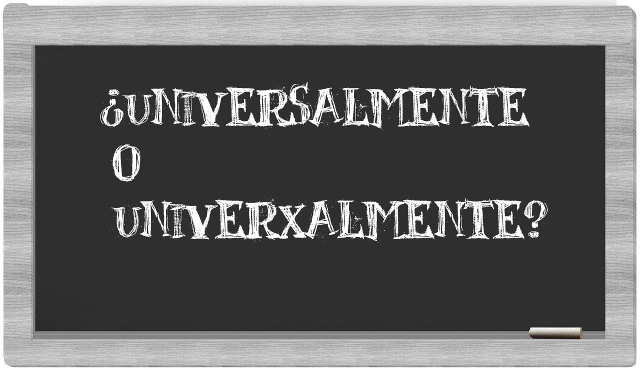 Cuando se presenta la situación que involucra los términos universalmente y univerxalmente, es fundamental que no existan titubeos en tu elección, puesto que únicamente universalmente se encuentra registrada de manera adecuada. Por otro lado, univerxalmente carece de presencia en el Diccionario de la Real Academia Española.