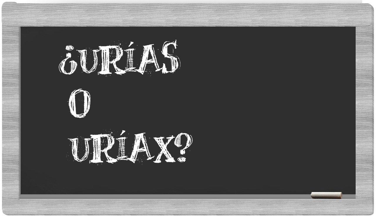 En lo que respecta a la distinción entre urías y uríax, no debería haber lugar para la incertidumbre, puesto que únicamente urías se encuentra registrada adecuadamente. Por otro lado, uríax no se halla en el compendio de la Real Academia Española.