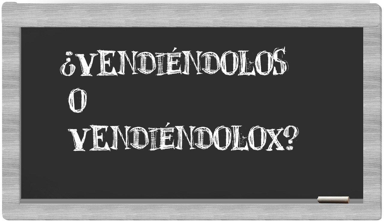 En la situación particular que involucra los términos vendiéndolos y vendiéndolox, no deberías titubear en absoluto, puesto que únicamente vendiéndolos es la forma adecuada, mientras que vendiéndolox carece de presencia en el Diccionario de la Real Academia Española.