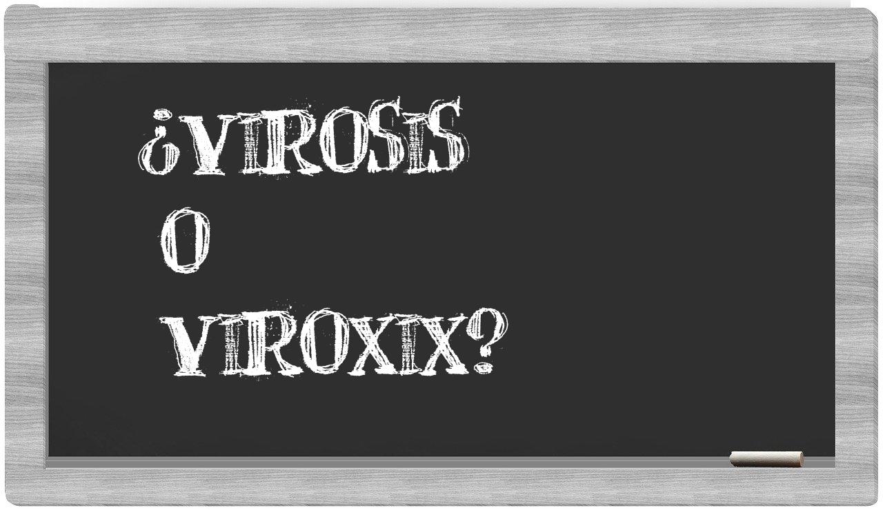En la particular situación que involucra a virosis y viroxix, no deberías vacilar en tu elección, puesto que únicamente virosis está correctamente formulada. Por su parte, viroxix no está registrada en el prestigioso Diccionario de la Real Academia Española.