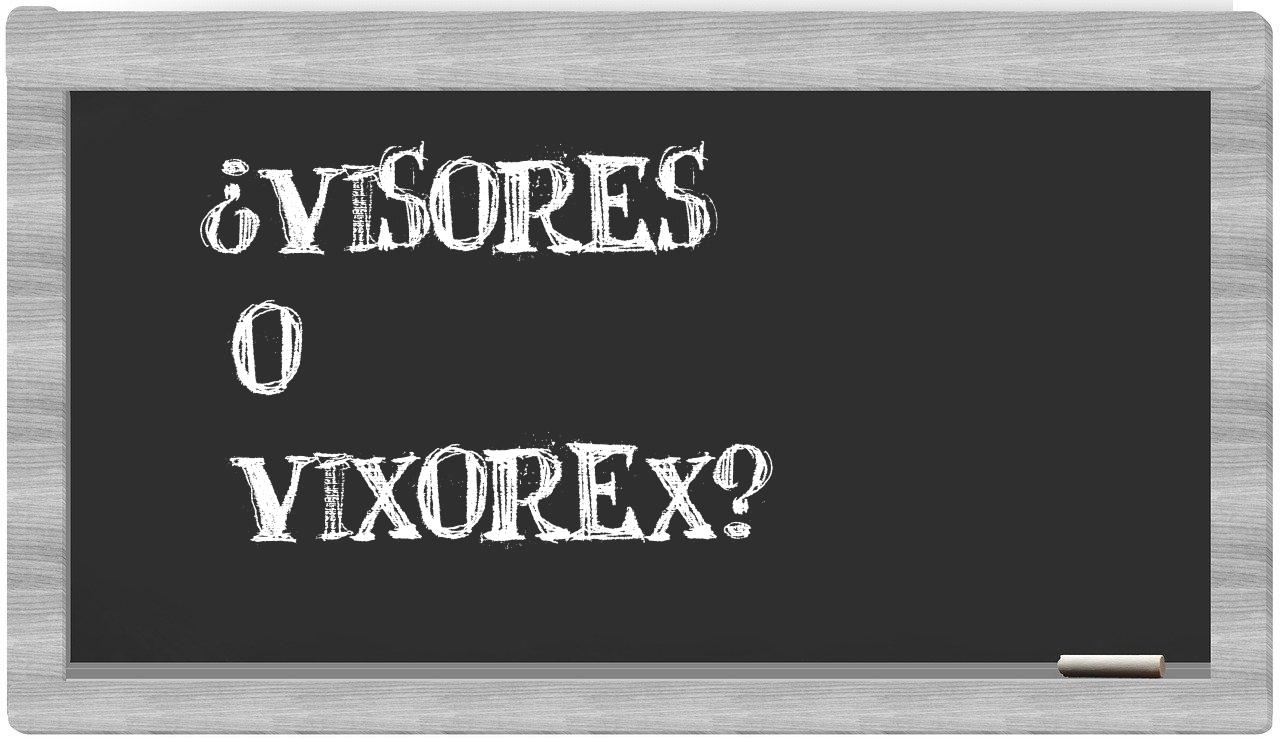 En la situación particular entre los términos visores y vixorex nunca deberías titubear, puesto que únicamente visores es el que se encuentra correctamente redactado. Por otro lado, vixorex no figura en el léxico de la Real Academia Española.