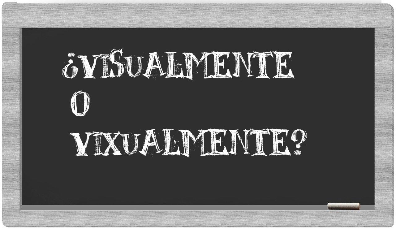 Cuando se trata del término entre visualmente y vixualmente, es crucial que no te sientas indeciso, dado que únicamente visualmente es la opción que se encuentra debidamente registrada. Por otro lado, vixualmente no forma parte del léxico aprobado por la Real Academia Española.