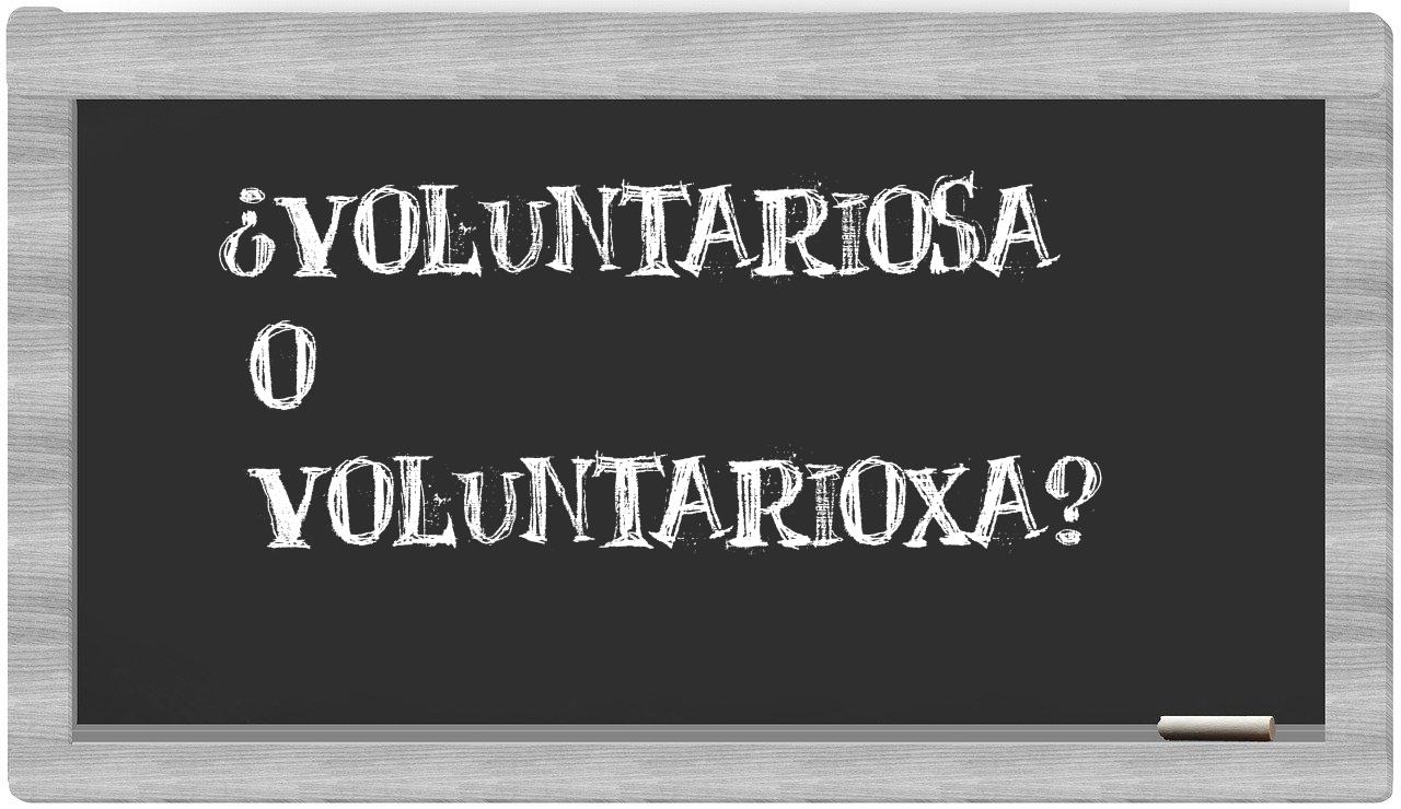 Cuando te encuentres ante la elección de usar voluntariosa o voluntarioxa, es fundamental que no vaciles, puesto que únicamente voluntariosa es la opción adecuada. Cabe resaltar que voluntarioxa no figura en el Diccionario de la Real Academia Española.