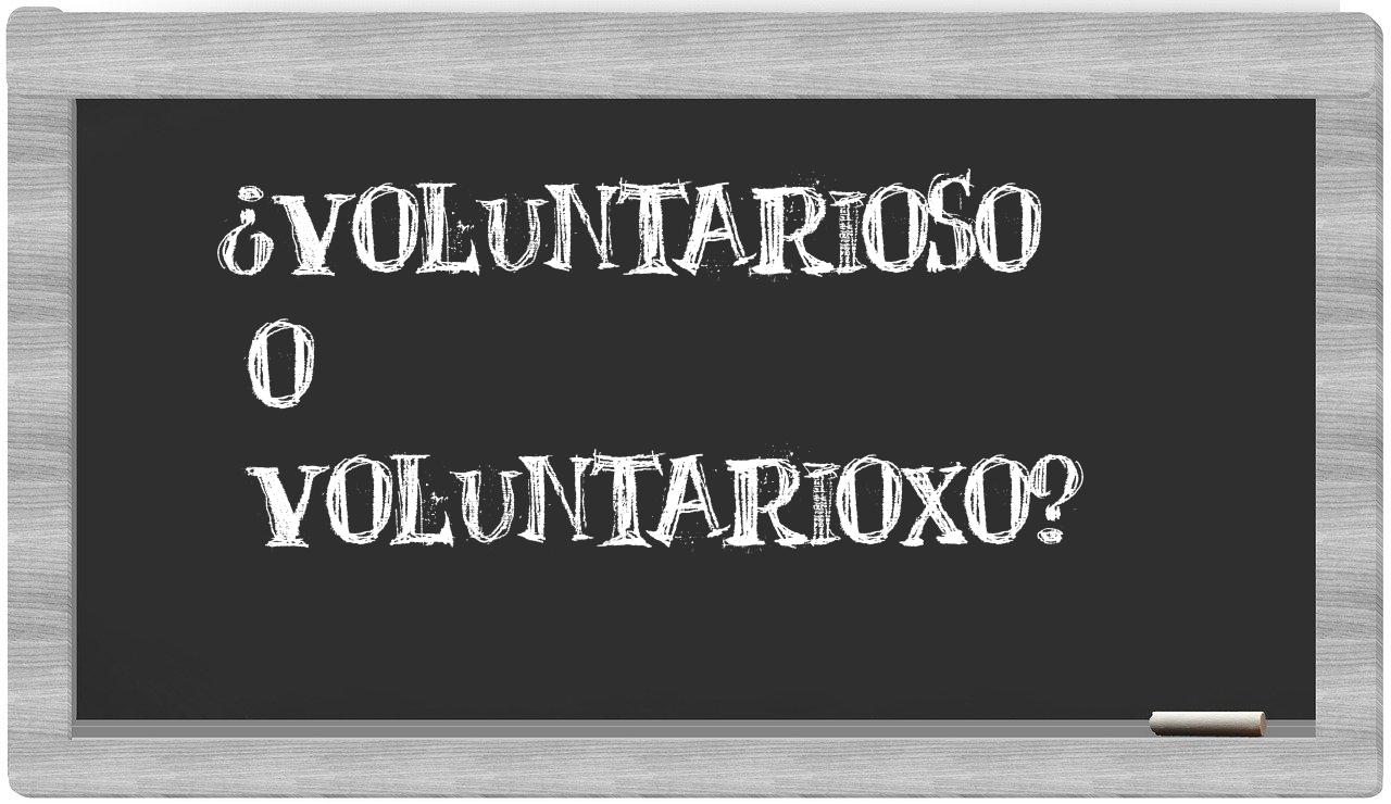 En la situación particular que involucra los términos voluntarioso y voluntarioxo, nunca deberías cuestionarte, puesto que únicamente voluntarioso se encuentra registrado de manera adecuada. En cambio, voluntarioxo es un término que no figura en el Diccionario de la Real Academia Española.