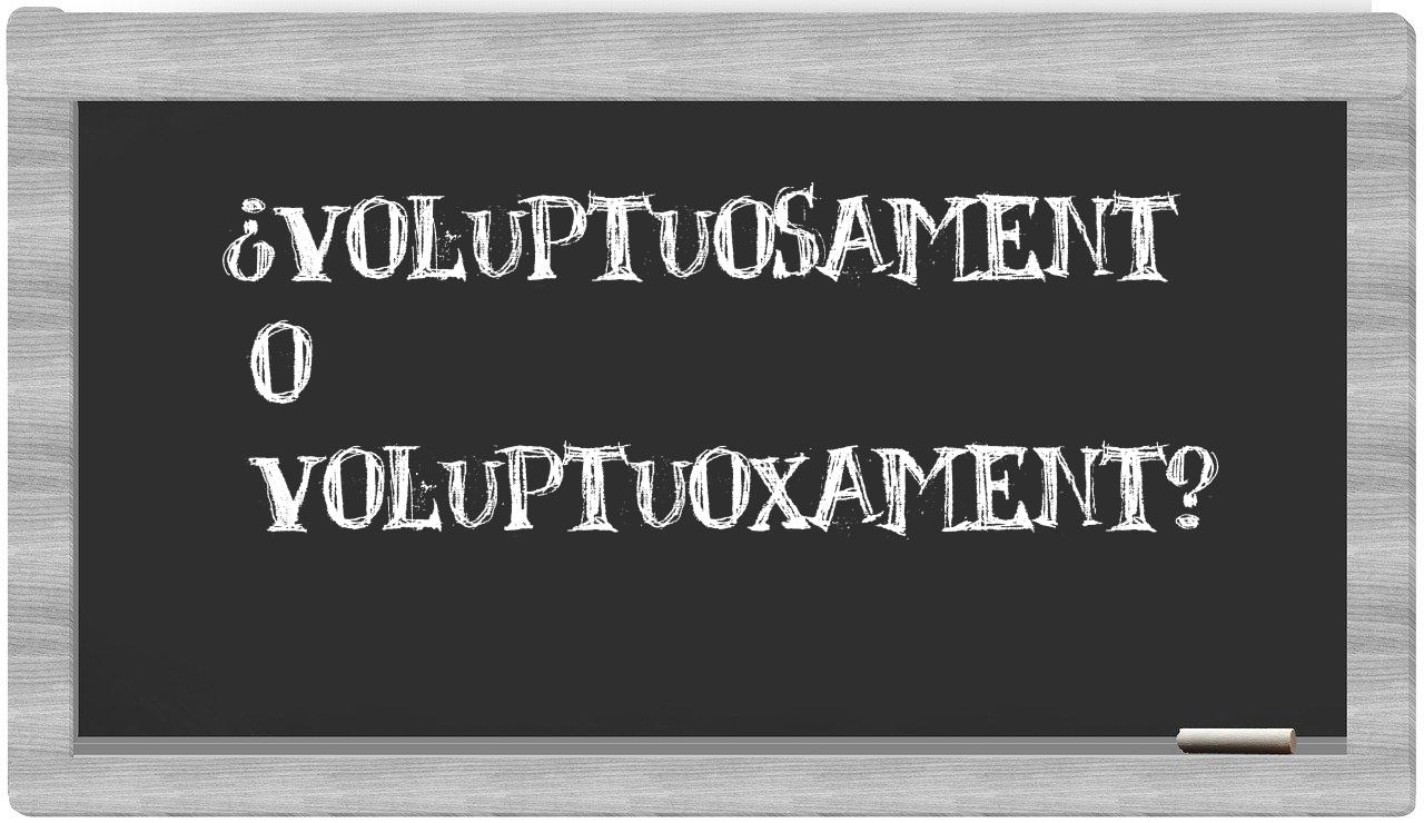 Cuando se trata de decidir entre voluptuosament y voluptuoxament, la elección siempre deberá ser clara, porque solo voluptuosament tiene la validez que le confiere el Diccionario de la Real Academia de la Lengua, mientras que voluptuoxament carece de reconocimiento en su obra.