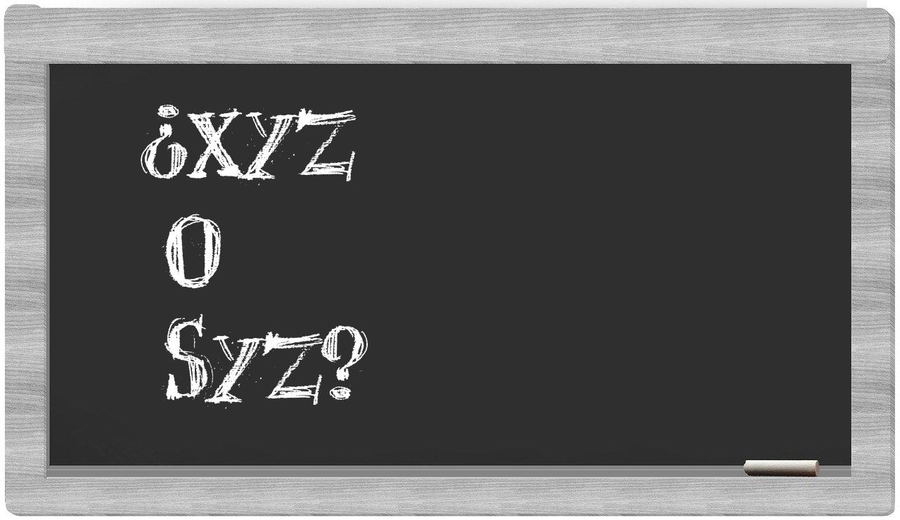 En la situación particular que se presenta entre los términos xyz y syz, es fundamental que no te sientas inseguro, puesto que únicamente xyz es la forma correcta de escribirlo. El término syz, por su parte, no figura en el Diccionario de la Real Academia Española.
