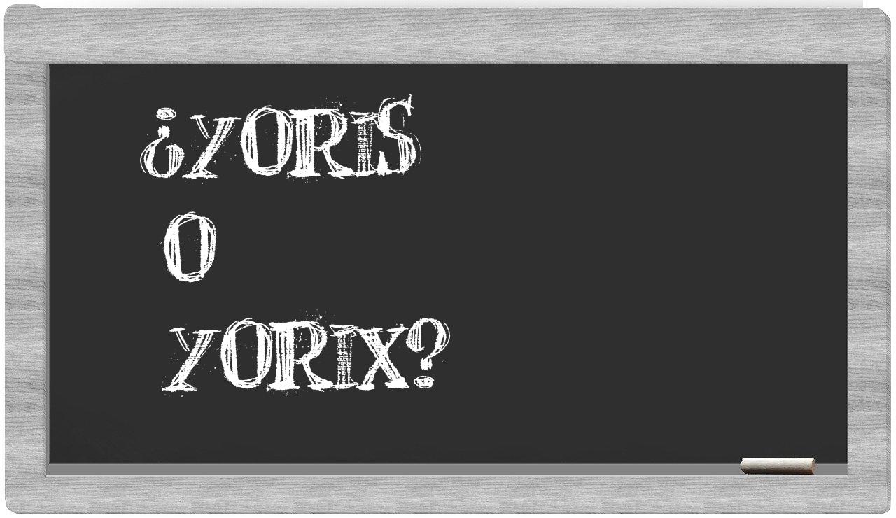 En la situación específica que se presenta entre yoris y yorix, no es necesario vacilar, puesto que únicamente yoris se encuentra correctamente expresada, mientras que yorix carece de reconocimiento en el Diccionario de la Real Academia Española.