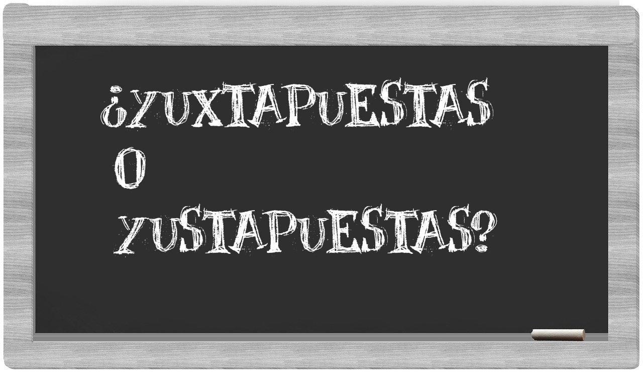 Cuando se presenta la disyuntiva entre yuxtapuestas y yustapuestas, no hay lugar para la incertidumbre, porque únicamente yuxtapuestas se encuentra correctamente redactada. Por otro lado, yustapuestas es una palabra que no se halla registrada en el Diccionario de la Real Academia Española.